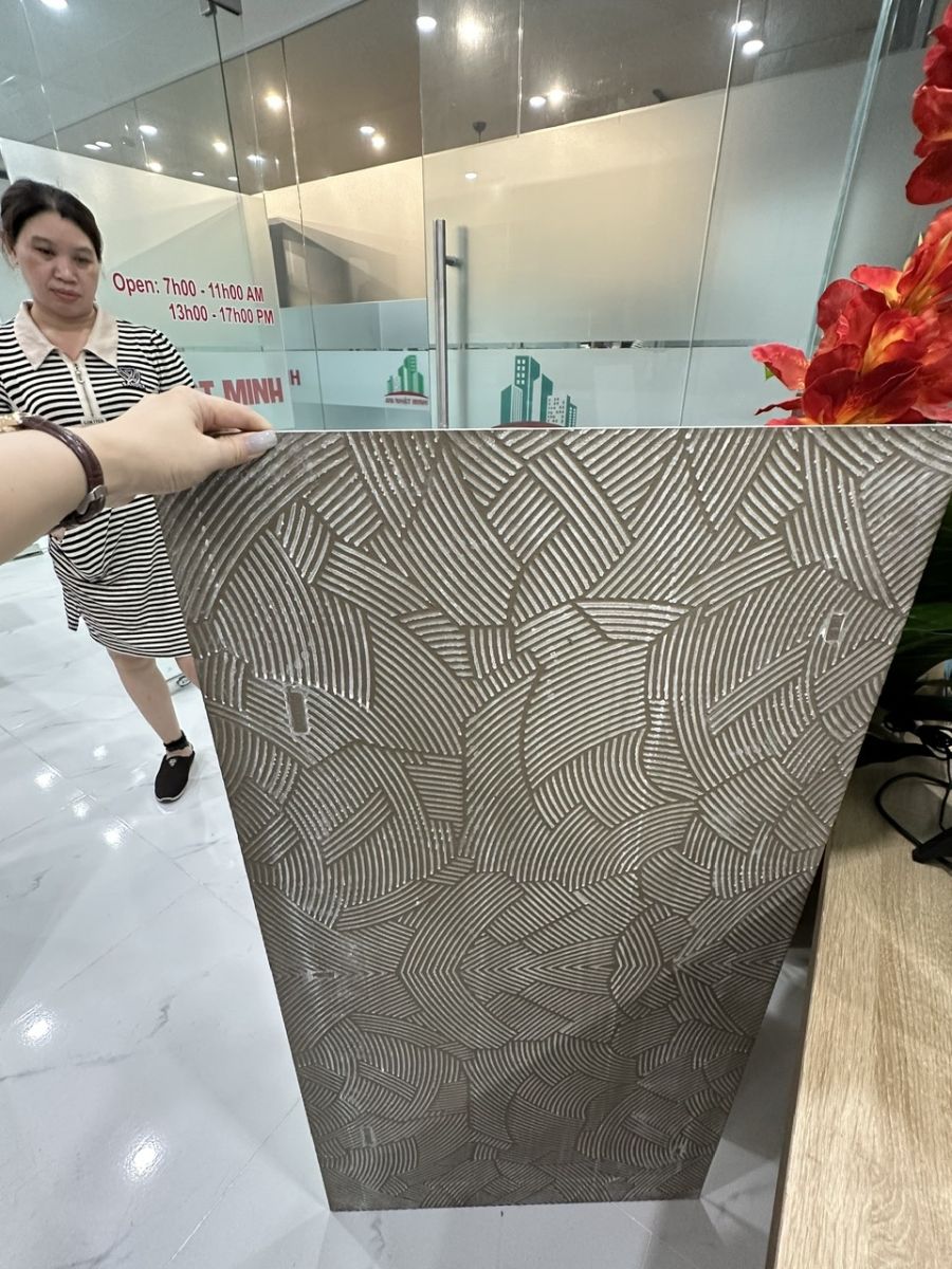 - Kiểm tra bề mặt của gạch: Cụ thể là đường vân phải sắc nét, không bị ố vàng, trầy xước. Chạm tay vào bề mặt gạch phải cho cảm giác mát mát.